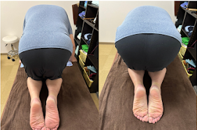 腰骨が弓のように反りながら横にカーブしている状態です。現場の施術で、このような痛みは半減するのですが、歩く距離が増えると、また痛みが再発しやすいです。それは歩く動作自体が腰の骨を捻って引っ張る習慣が定着してしまっているからです。